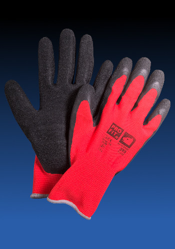 Art. Nr. SUPER Latex-Feinstrickhandschuh, rot/schwarz, Handinnenfläche und Fingerkuppen mit schrumpfgerauhter Latex Beschichtung, Polyester-Liner, Rundstrick-nahtlos.