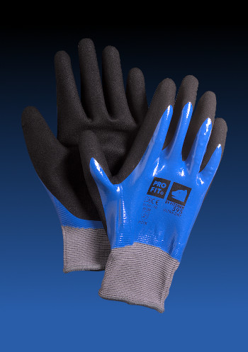 Art. Nr. DT Ultra Dry Nitrilschaum-Feinstrickhandschuh, blau / schwarz, Handinnenfläche und Hand- rücken mit 2-facher Nitril Beschichtung, extra Nitrilschaum Beschichtung für mehr Grip.